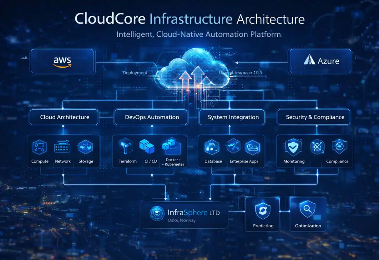 CloudCore was built to replace rigid IT systems with intelligent, cloud-native infrastructure. We designed and implemented CloudCore as an intelligent, cloud-native automation platform that replaces rigid infrastructure with adaptive digital systems. Our team built scalable cloud architecture, automated DevOps pipelines, seamless system integrations, and security-first frameworks. The platform continuously monitors, predicts, and optimizes performance, enabling InfraSphere to scale faster, operate smarter, and stay compliant without manual intervention.