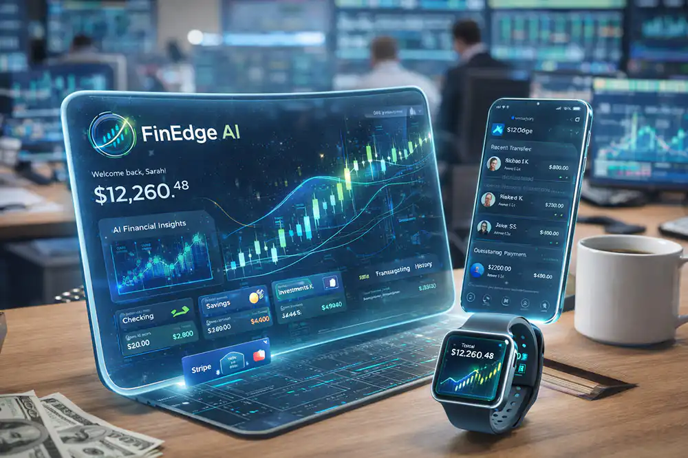 FinEdge AI Fintech Platform was developed to modernize a growing fintech company’s digital ecosystem while maintaining regulatory integrity and user trust. We engineered a secure, AI-assisted financial platform that simplified money management, improved risk visibility, and delivered real-time insights to users. The solution combined performance-driven engineering with intuitive UX, enabling seamless onboarding, faster transactions, and smarter financial decisions—without compromising compliance or security.