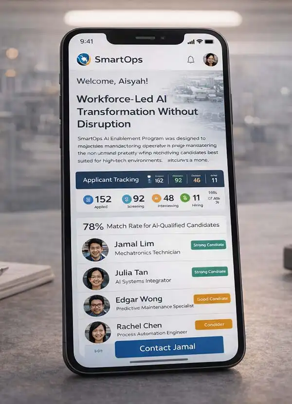 SmartOps AI Enablement Program was designed to modernize manufacturing operations while empowering the existing workforce. Instead of replacing teams, we introduced AI-powered workflows that simplified planning, reporting, and execution. The program focused on adoption-first design, ensuring employees felt confident using intelligent tools aligned with real production constraints, resulting in sustainable transformation driven by people, not technology alone.